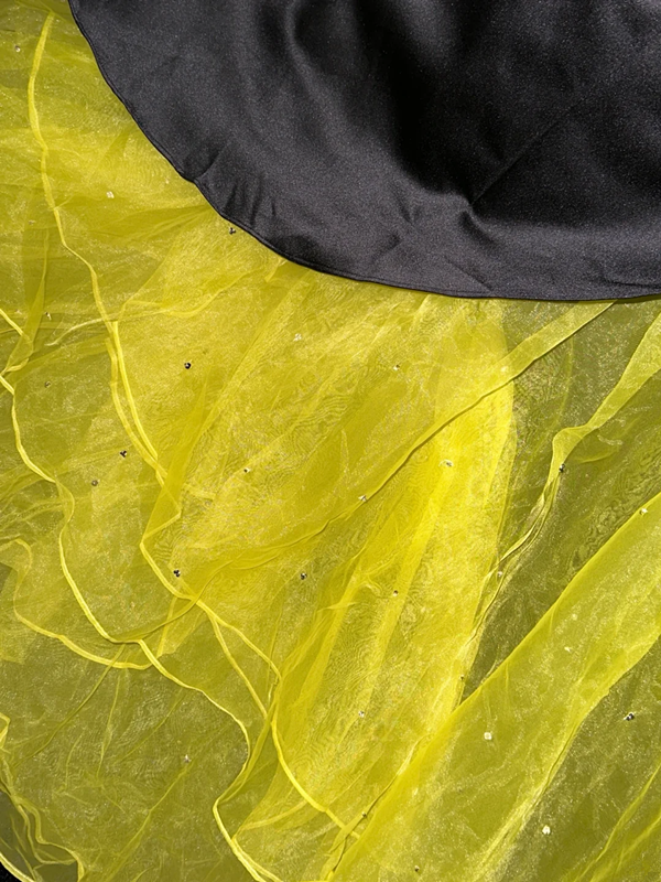 Black strapless fitted waist slim-fitting ball gown with yellow skirt R7005