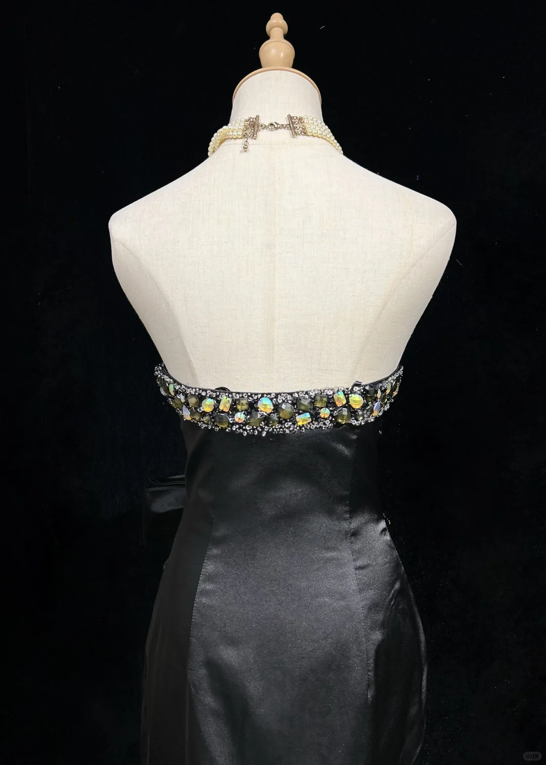 Black tube top diamond waist design sense slimming short dress homecoming dress R4894