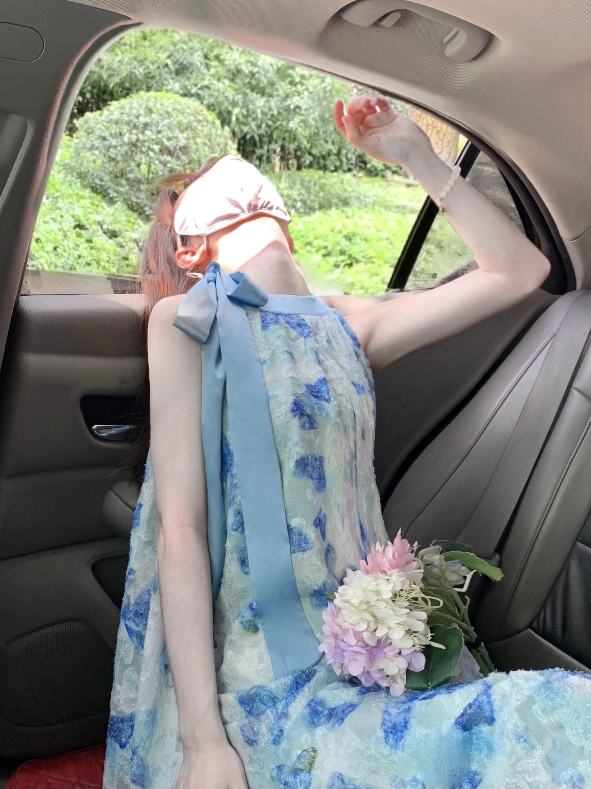 Butterfly floral lace-up halter neck dress gentle style temperament long skirt R0754