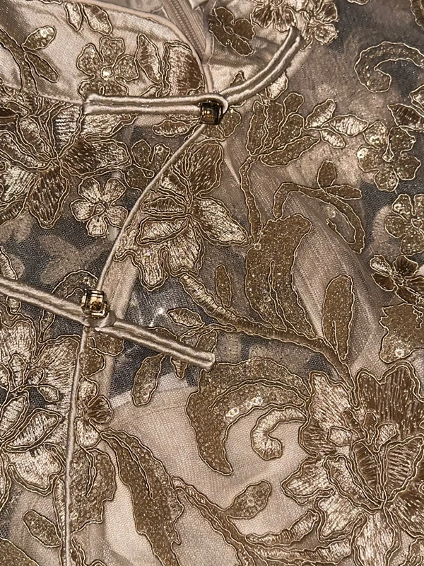 Champagne-colored, fitted, elegant, classic mid-length ball gown R6866