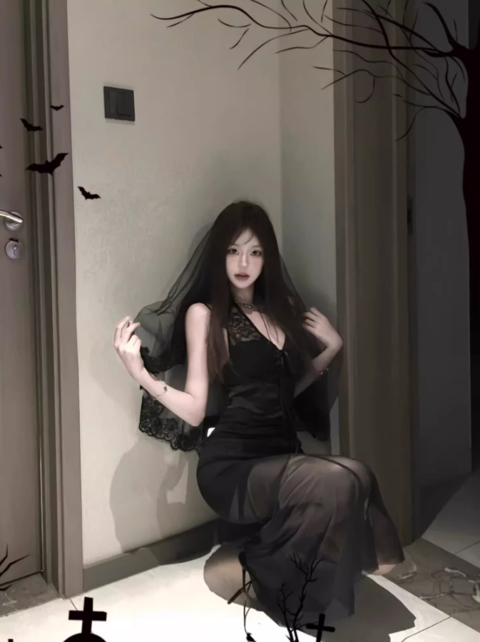 Christmas Black V-neck Lace Dress 2025 Mesh Hip Fishtail Skirt R1024