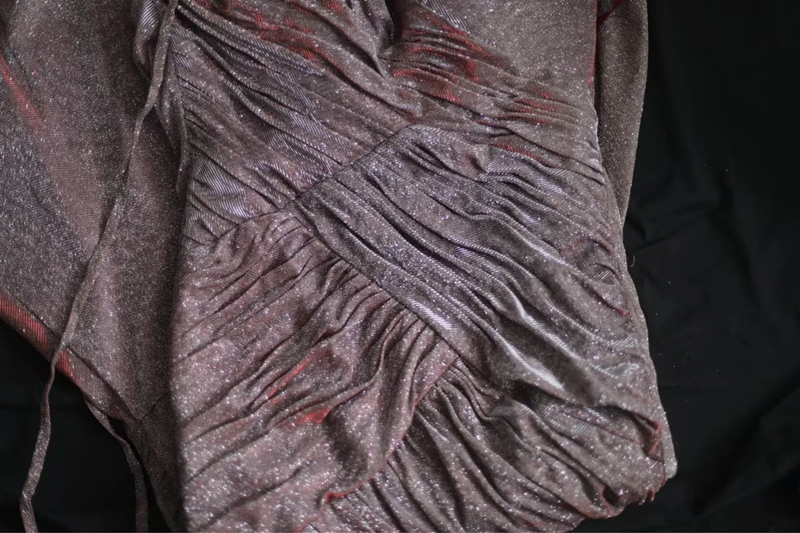 Dark red halter-neck, fitted, pleated, fishtail skirt, long ball gown R6751