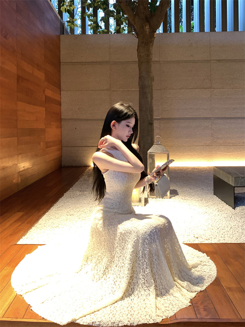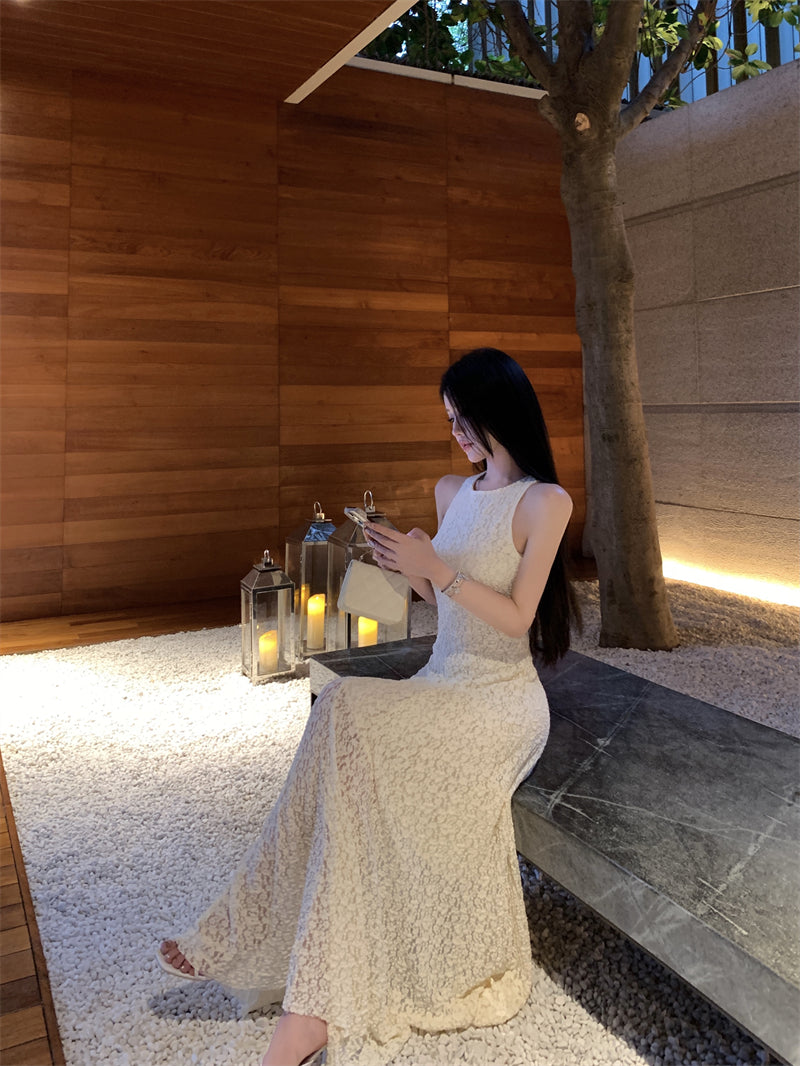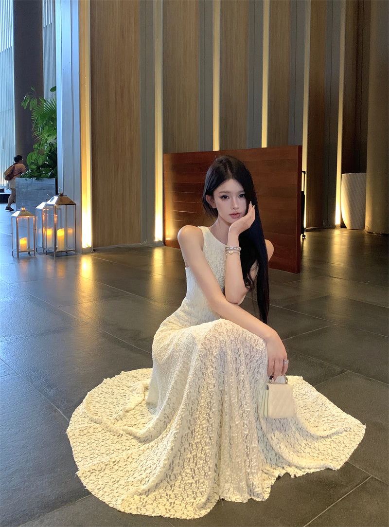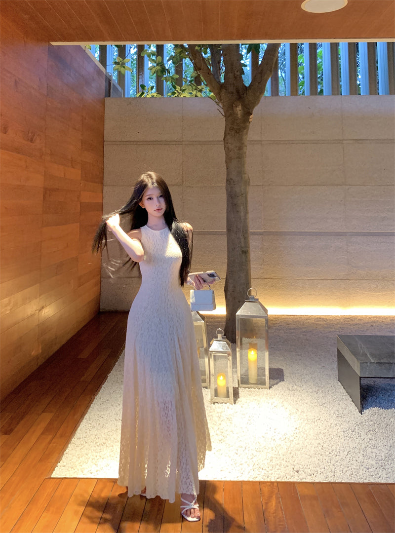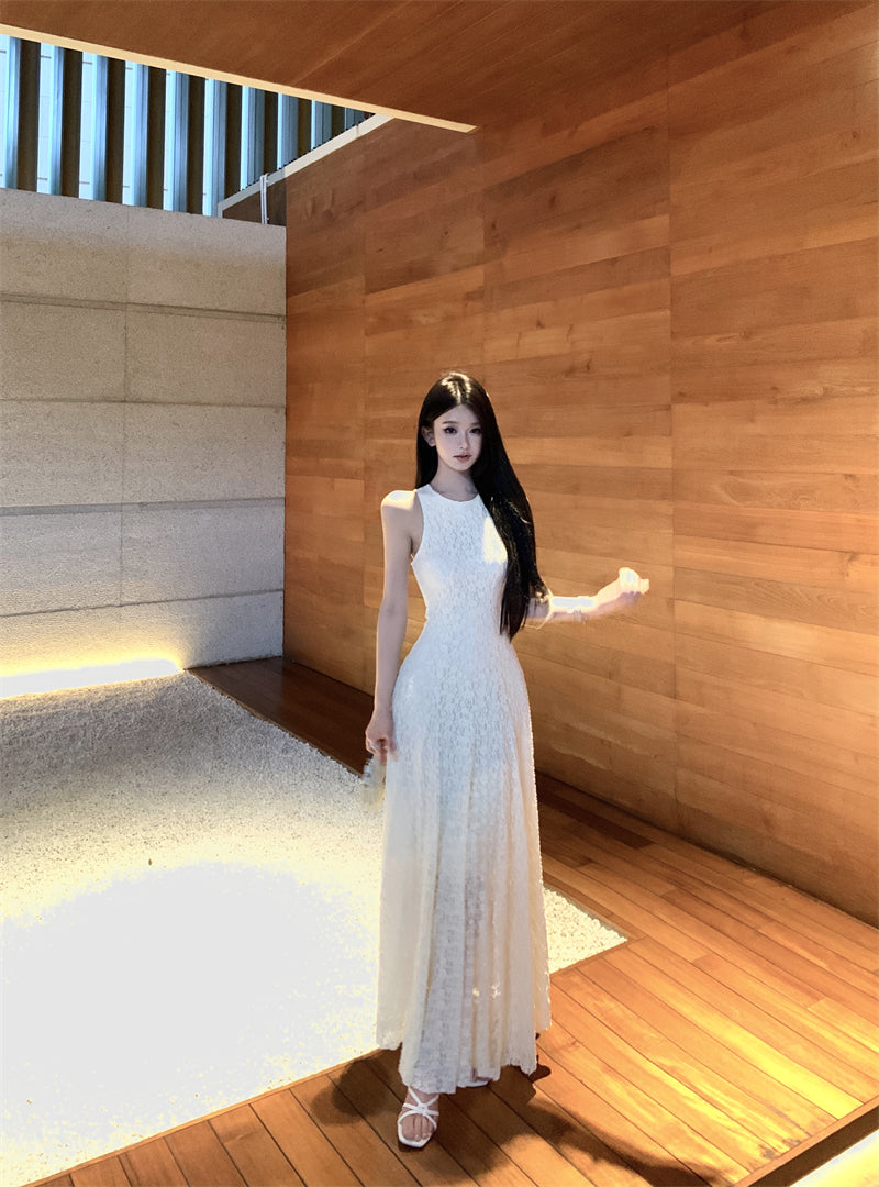 Elegant and decent skirt exquisite lace vest large swing skirt waist dress R0711