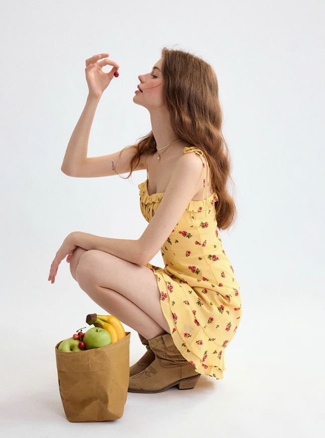 French floral dress holiday style suspender skirt petite short skirt short skirt female summer R3524