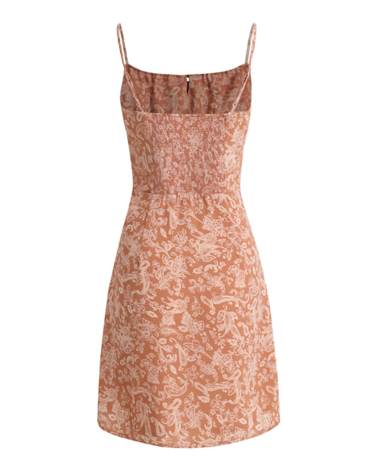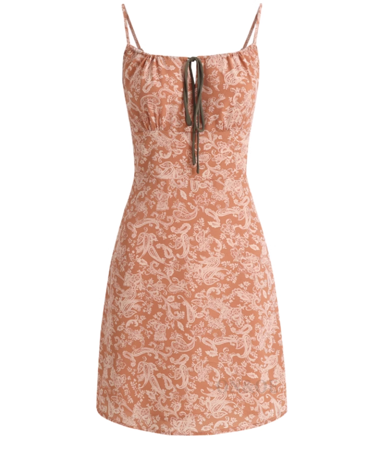 French holiday short yellow 2025 new suspender print dress R2652