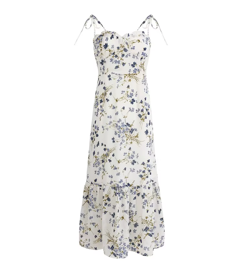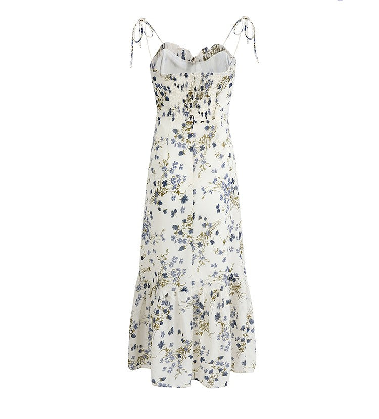 French holiday style long white 2025 new floral sling dress R2653
