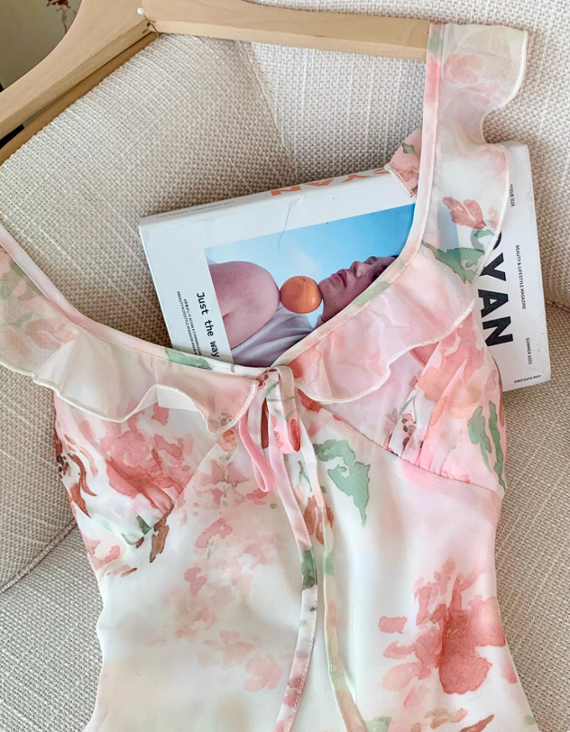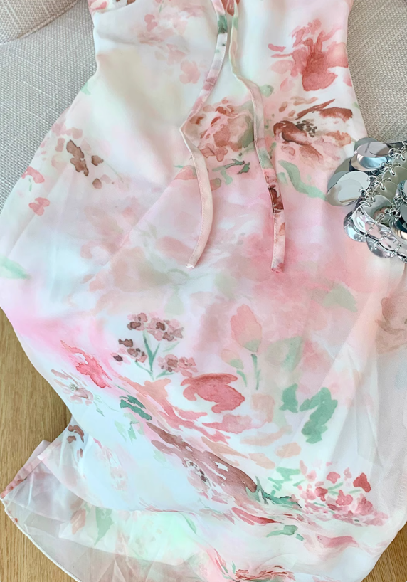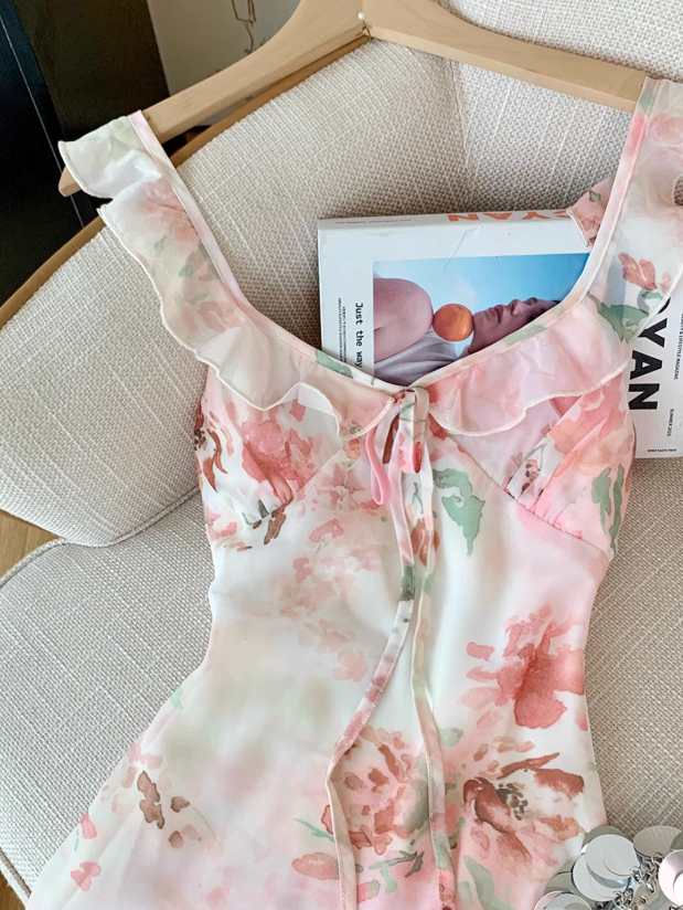 French pure desire style v-neck suspender dress new gentle style small flying sleeve long dress R4034