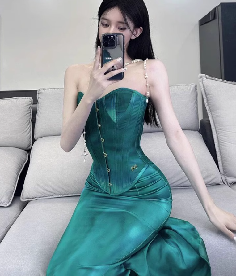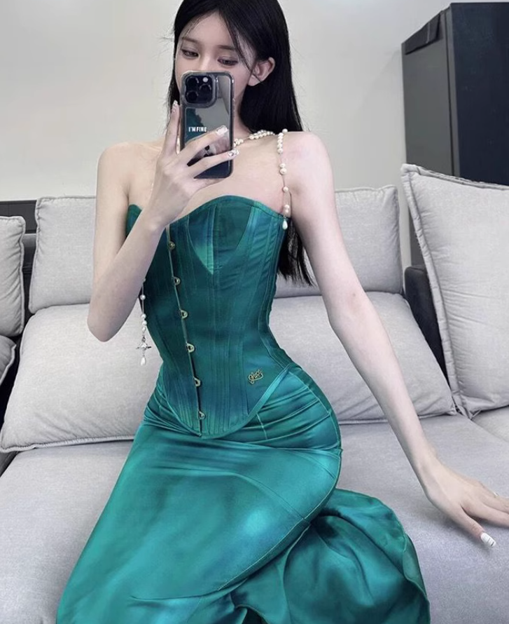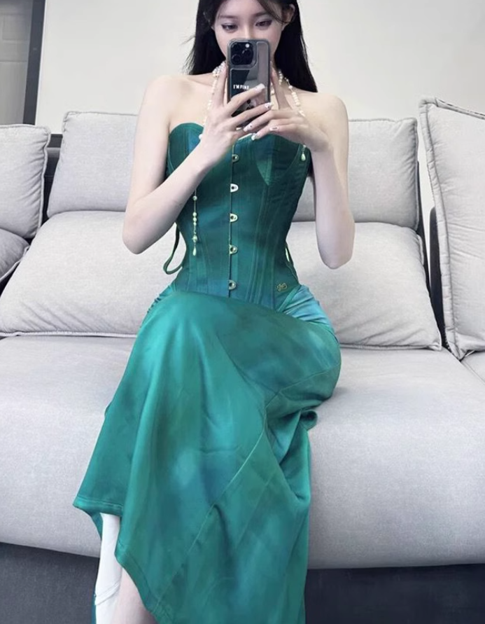 French retro herringbone tube top 2025 plus size satin hip skirt suit R1422