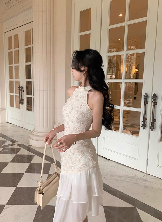 French retro lace dress splicing slim temperament fishtail skirt summer new style R4339