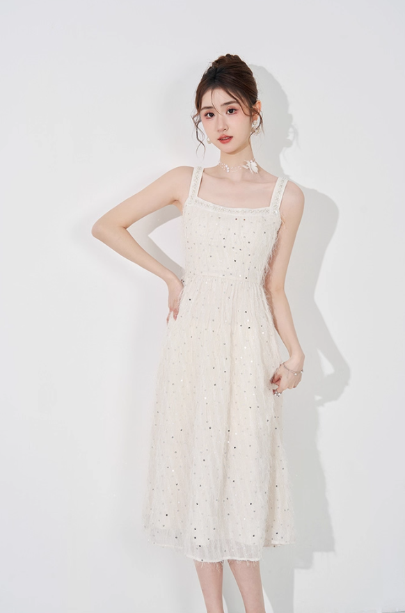 French romantic suspender dress suspender dress new mid-length niche temperament skirt R4379