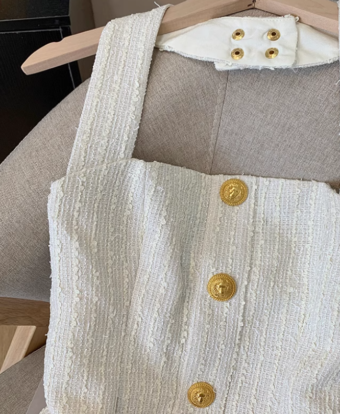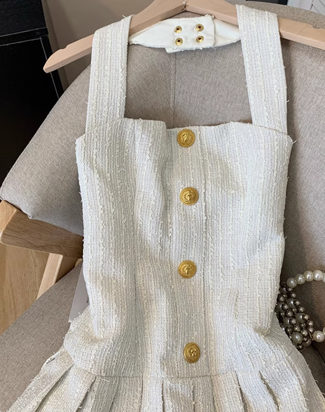 French style Chanel style halter neck dress new summer style high-end pleated skirt R3989
