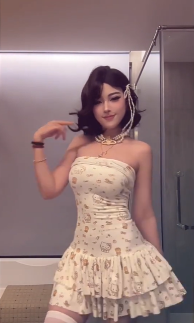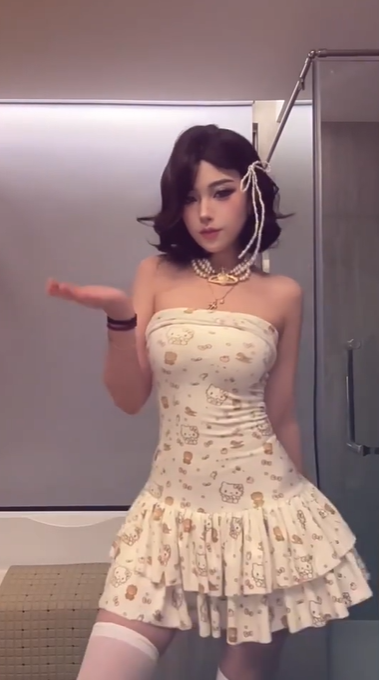 French style printed tube top dress for women with slim waist and cake-like puffy short skirt R3139