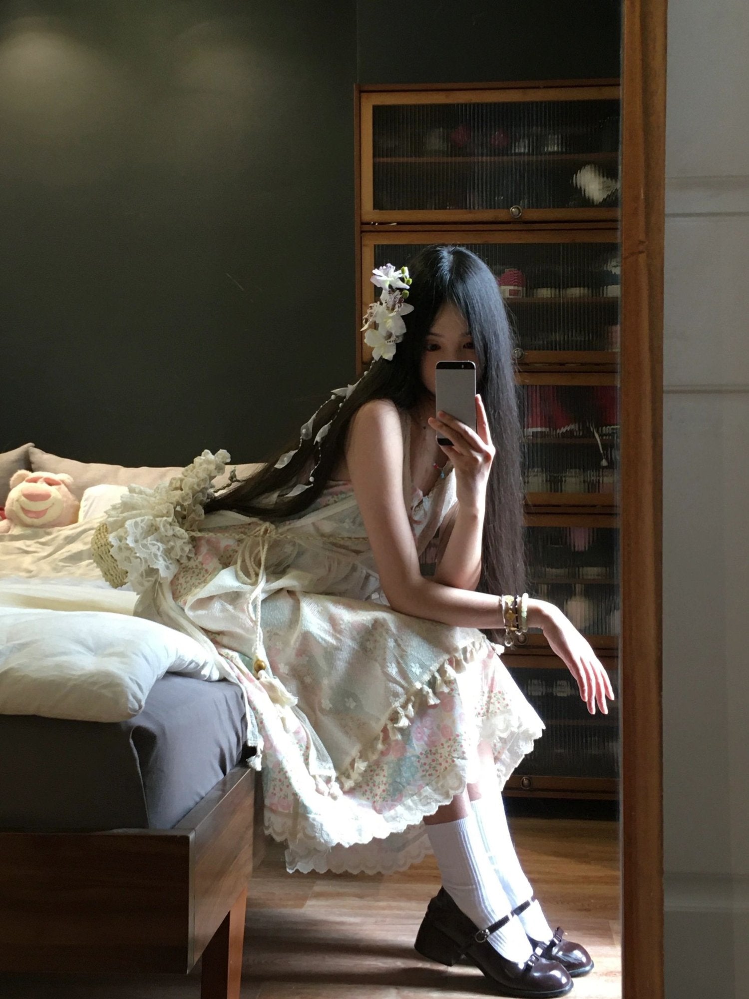 Gentle style floral suspender dress unique loose beautiful small skirt R0634