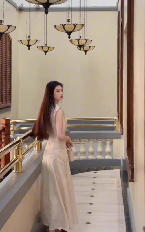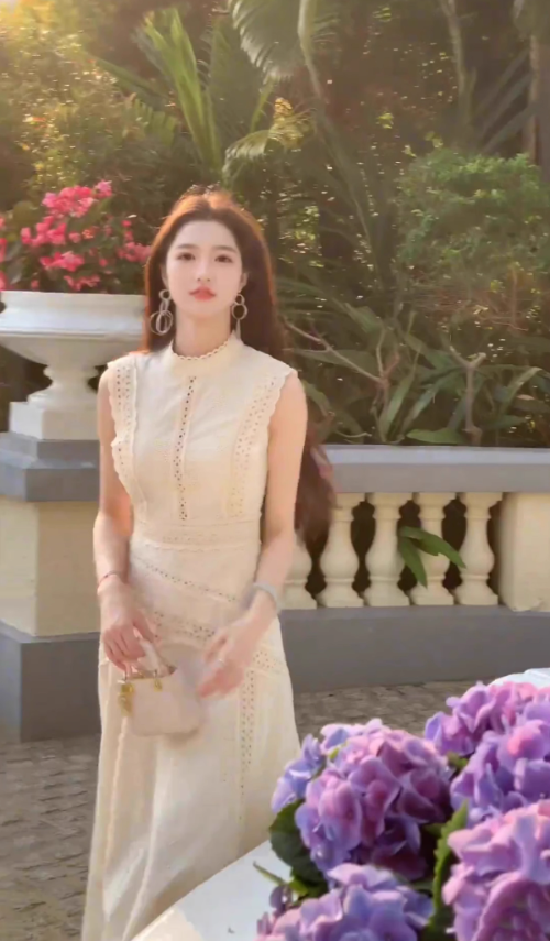 Gentle temperament lace sleeveless vest dress beautiful waist A-line long skirt R0677