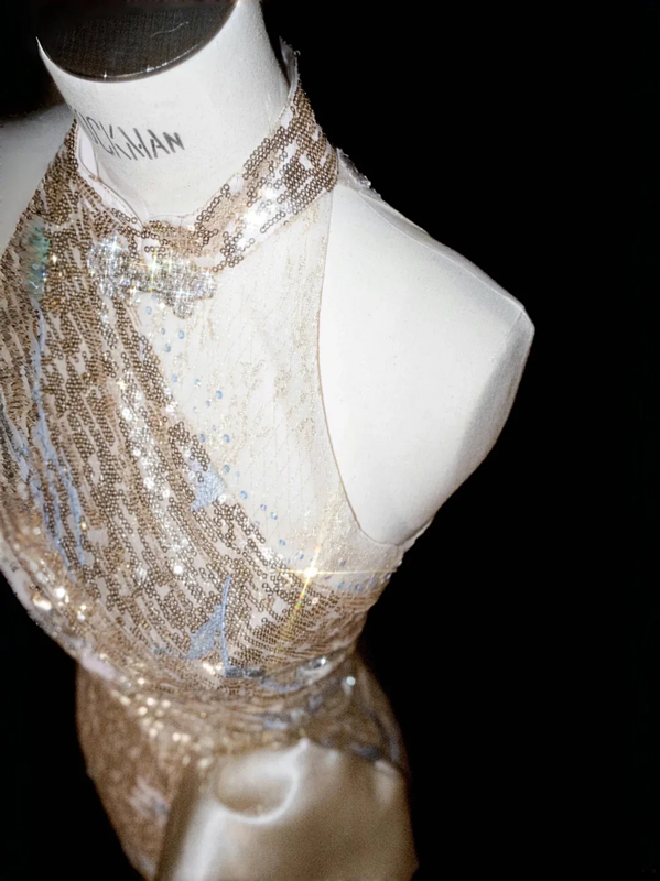 Gold sequined sleeveless slim waist hip-hugging sexy long skirt, prom dress R5667