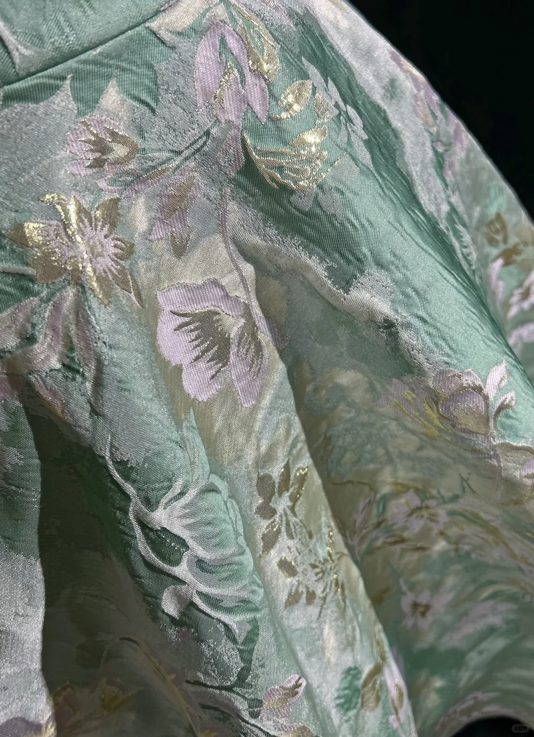 Green printed sleeveless slim waist puffy A-line princess dress homecoming dress R4961