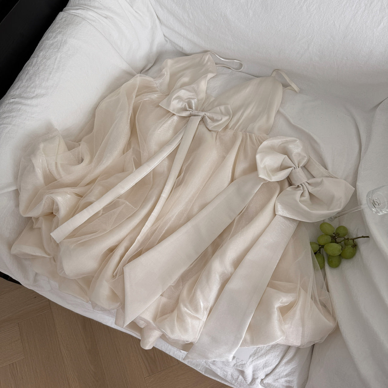 Halter neck dress 2025 summer backless bow princess dress pure desire flower bud dress R2179