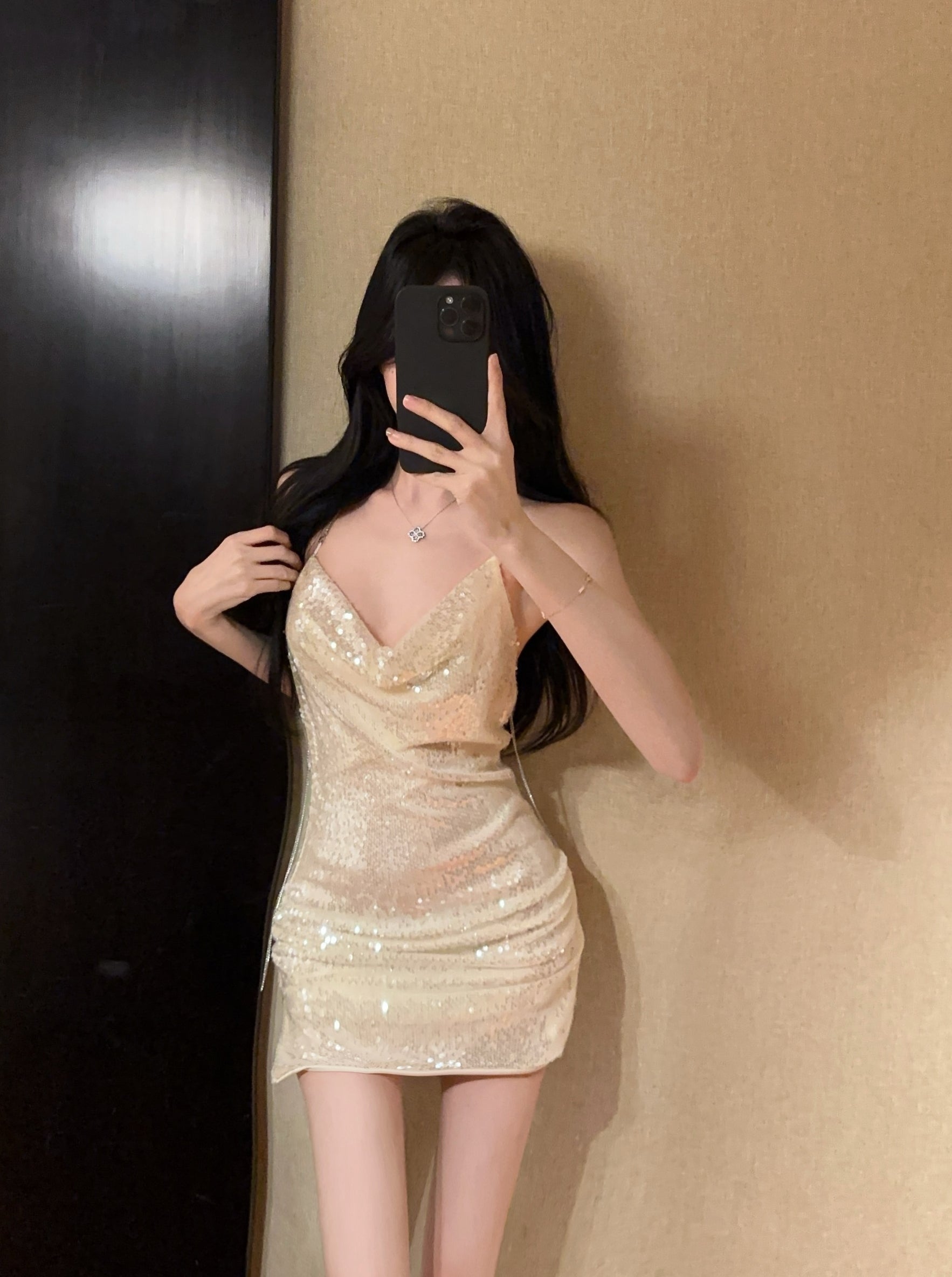 High-end halter neck open back sequined dress sexy high waist temperament slim fit dress R3794