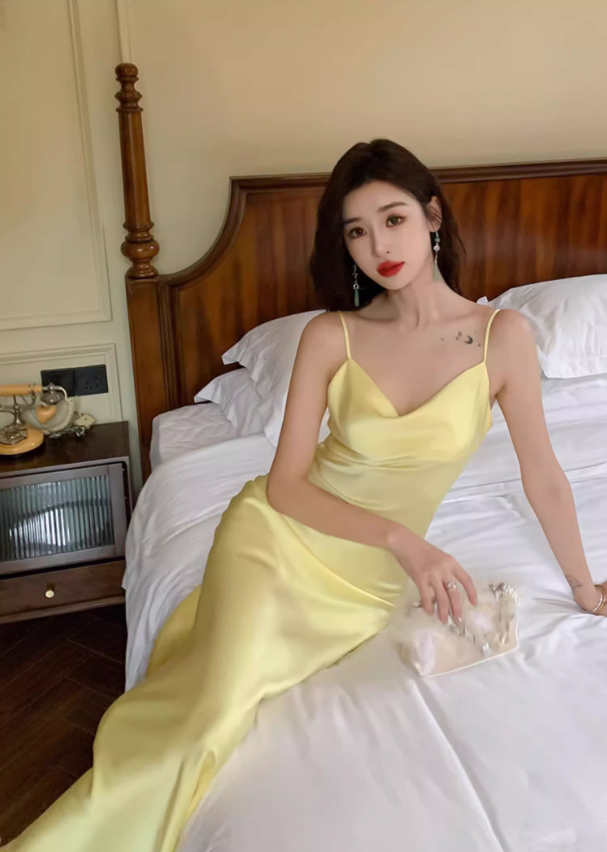 High-grade silk suspender dress 2025 new women's slim fit base acetate vest long skirt R0996