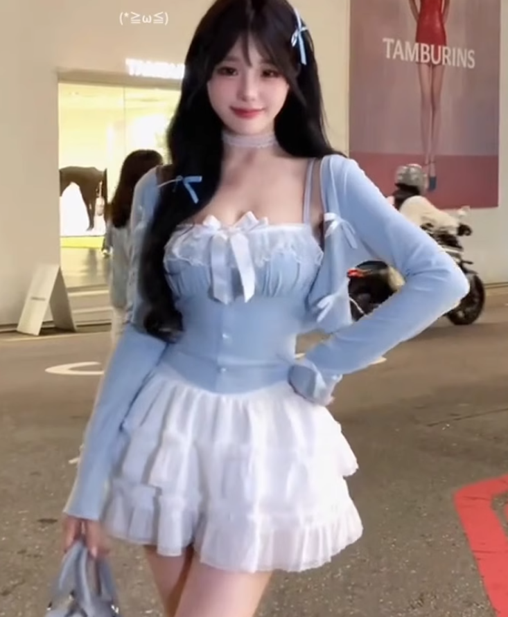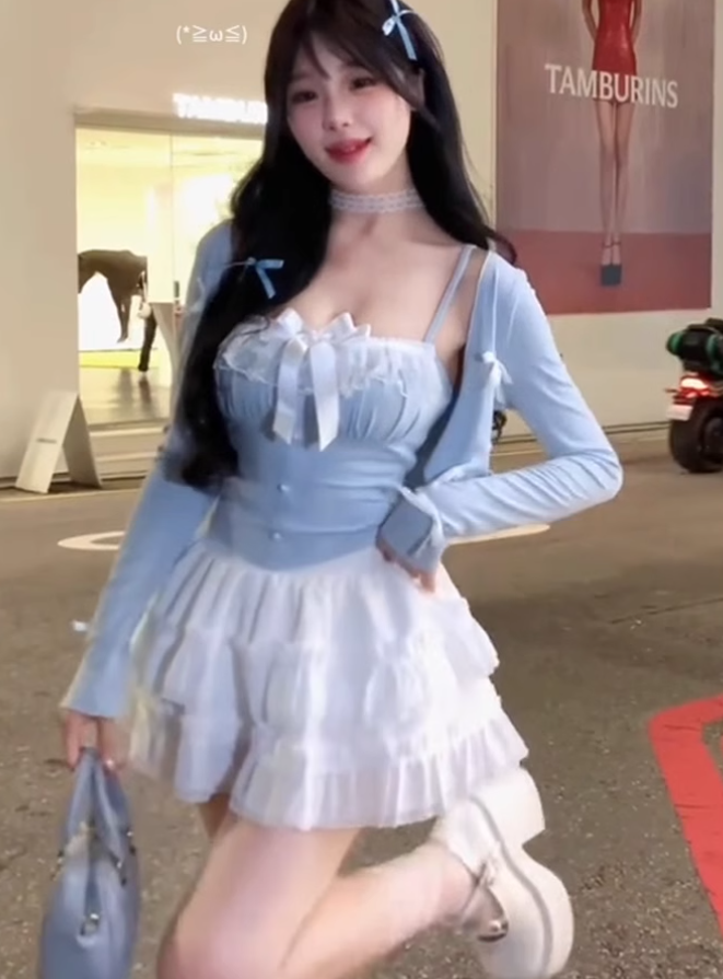 Large size French pure desire style sweet spicy cardigan sling puffy cake skirt suit R1845