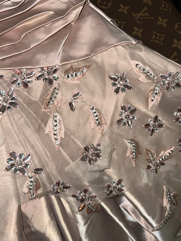 Light champagne-colored strapless, fitted, sexy long ball gown R6967
