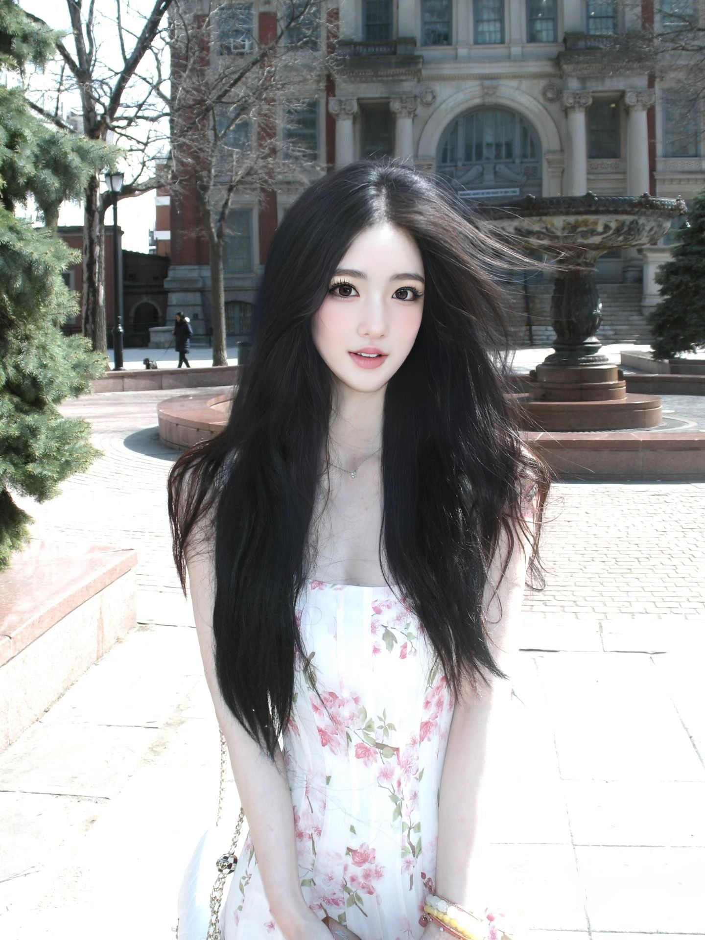 New gentle temperament suspender floral dress beautiful waist A-line long skirt R0696