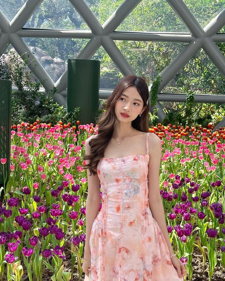 Pink floral suspenders, slim waist, gentle and charming mini skirt, homecoming dress R4047