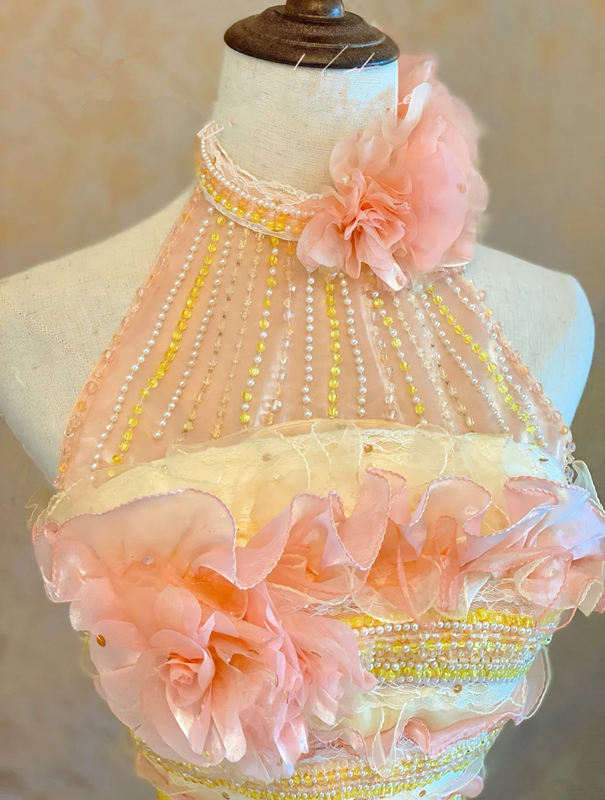 Pink Long Prom Dress with Sleeveless Halter Neck, Fitted Waist and Tiered Skirt; Bridal Gown R7317