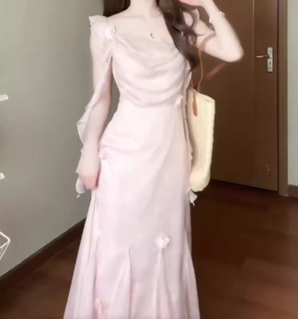 Pink small flying sleeve dress beautiful fairy dress medium length R0700