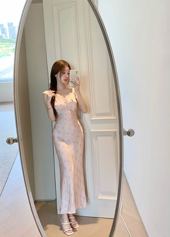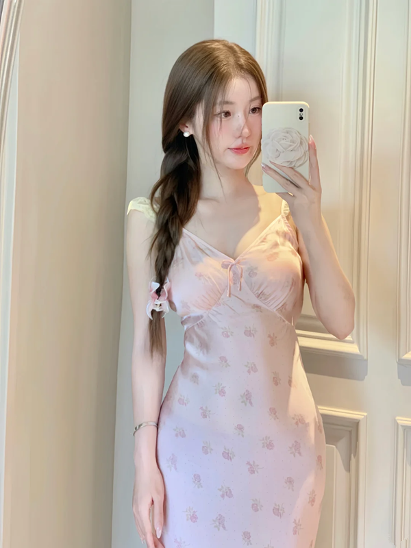 Pink suspender low-cut waist slim hip fishtail skirt R5030