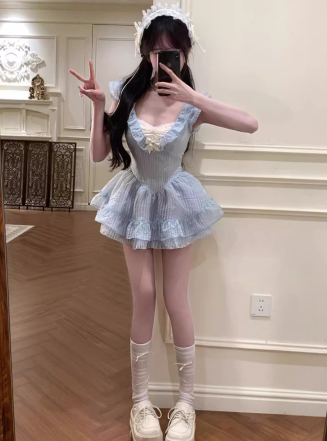 Pure desire bow embroidered dress 2025 flying sleeve waist princess dress R1373