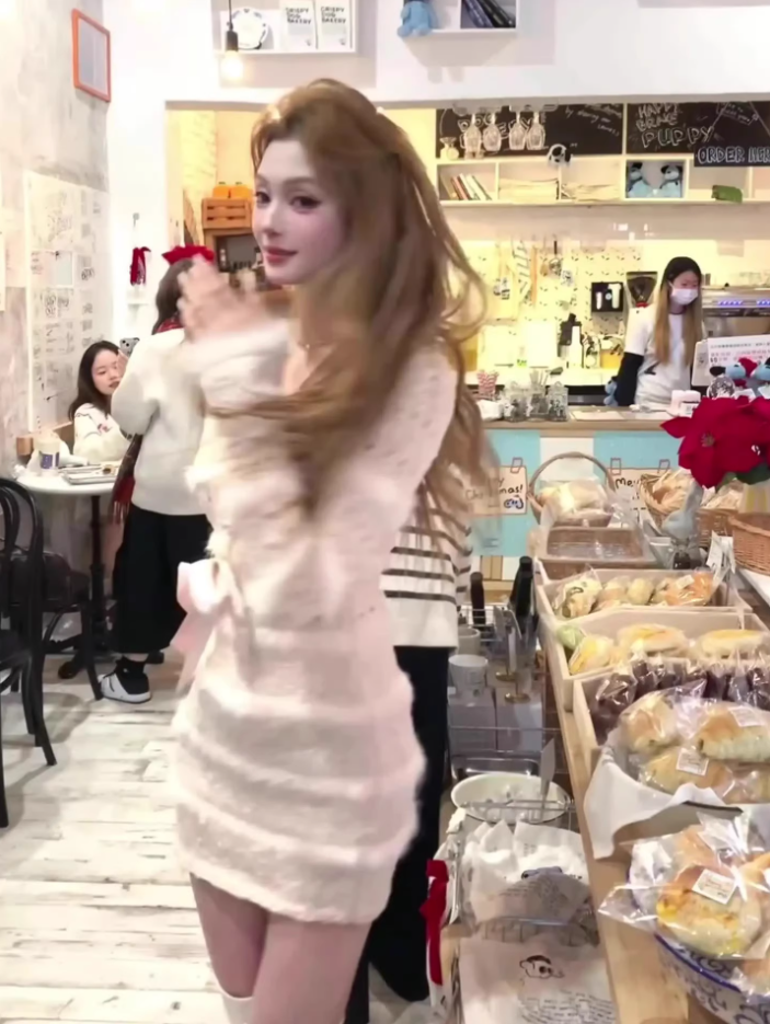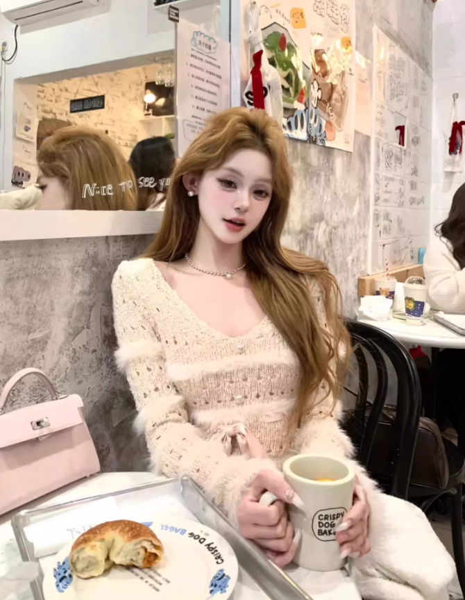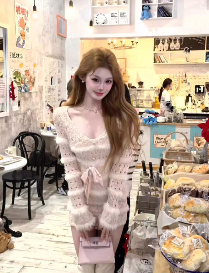 Pure desire style V-neck plush patchwork skirt 2025 hollow bow waist hip skirt R1377
