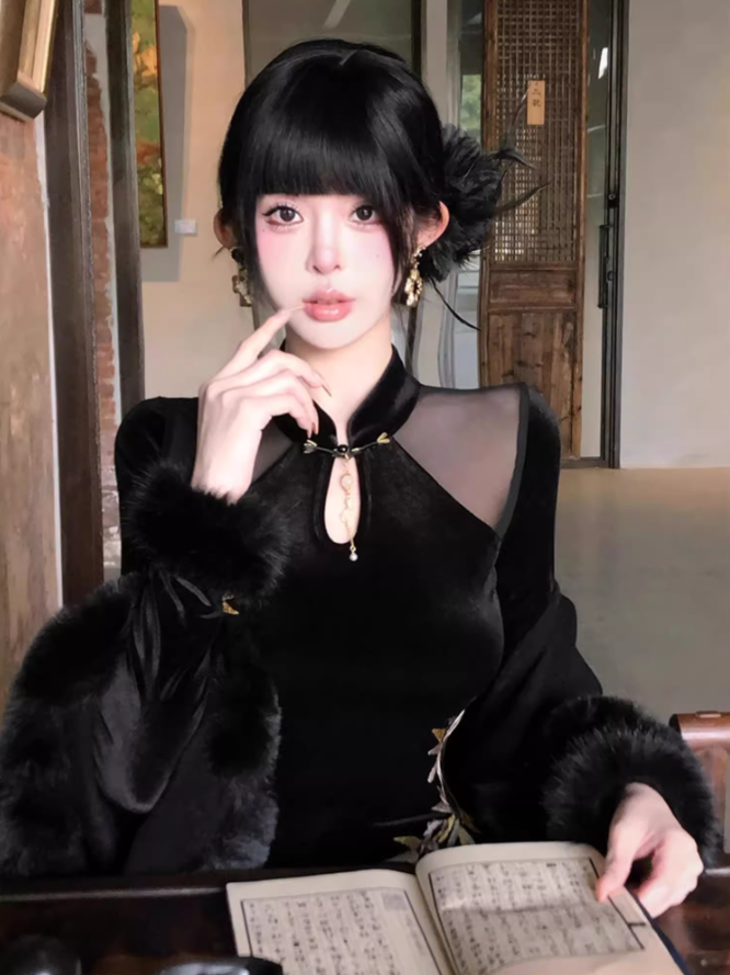 Retro New Chinese Dress 2025 Lace Backless Waist Hip Short Skirt R1257