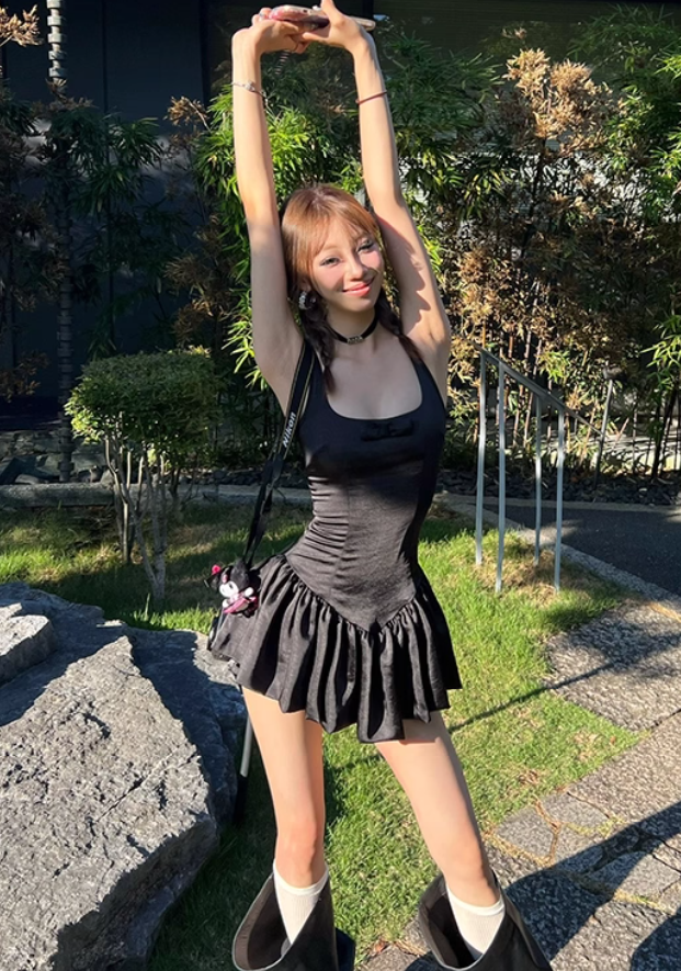 Retro pure desire style suspender dress 2025 large size sweet spicy style waist ballet tutu skirt R1250