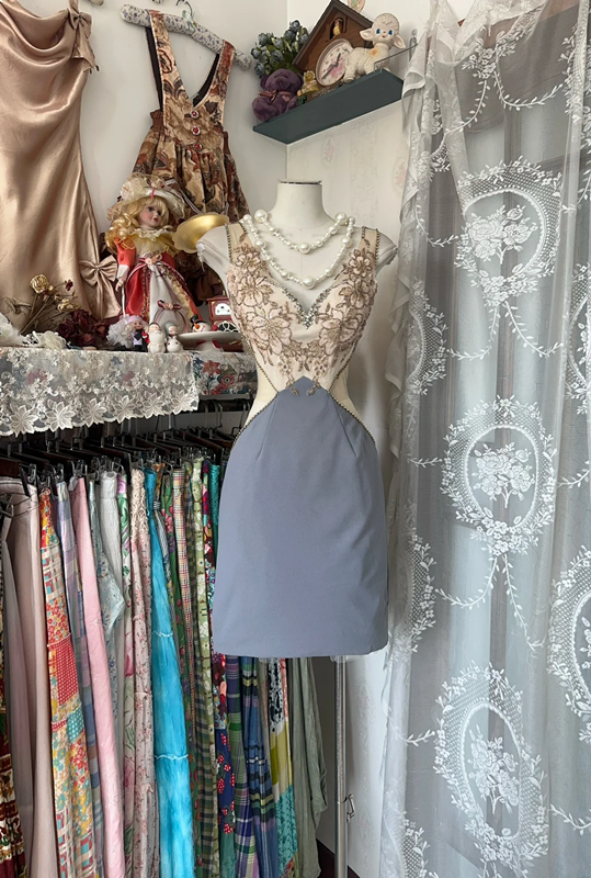 Retro stitching beaded waist slim hip short skirt ball gown R6196