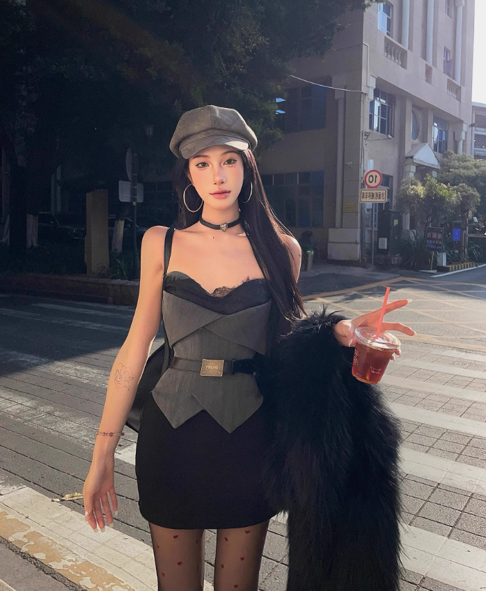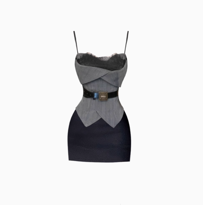 Royal sister style lace splicing tube top 2025 sexy hot girl hip skirt suit R1371