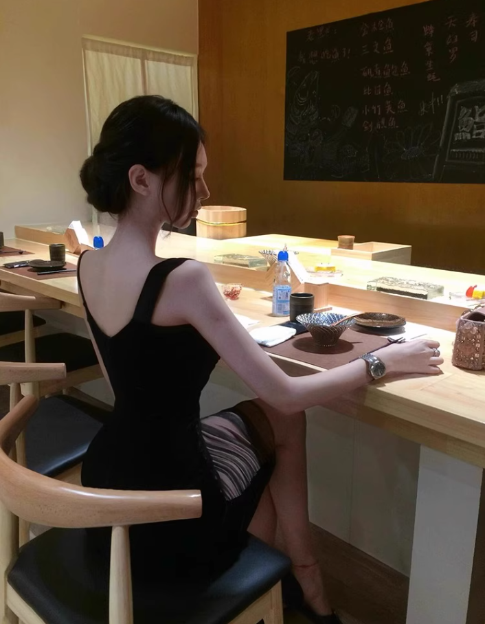 Royal sister style mesh suspender dress 2025 pleated waist hip slit skirt R1101