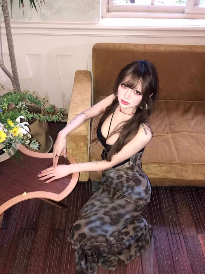 Sexy hot girl lace suspender dress 2025 leopard print waist hip fishtail skirt R1198
