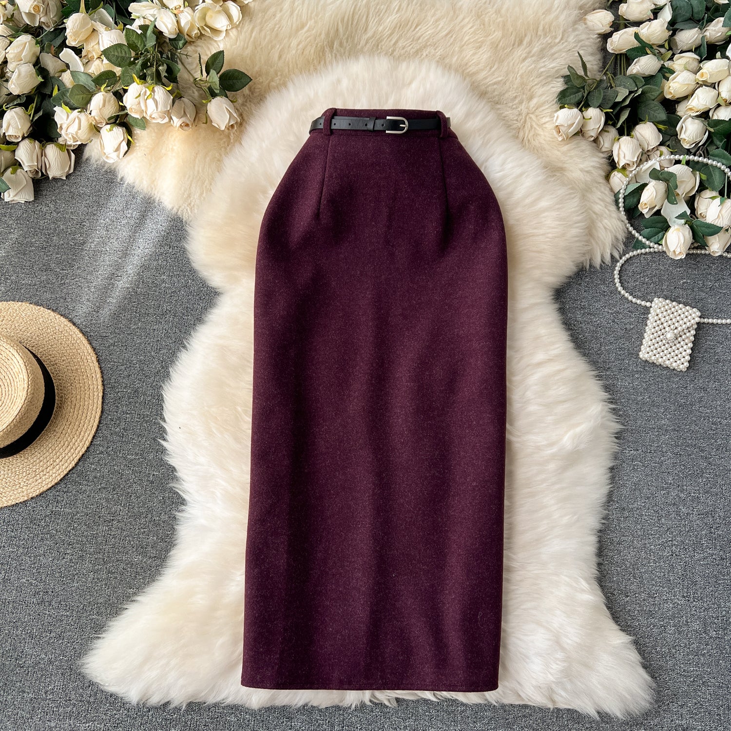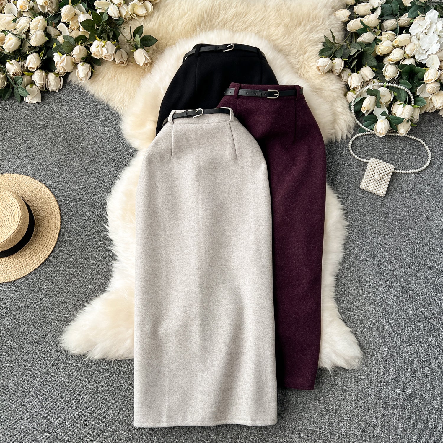 Skirt temperament all-match high waist hip skirt slim fit medium length slit straight skirt R2266