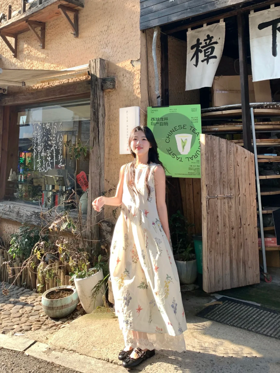 Sleeveless vest floral dress beautiful holiday style loose temperament long dress R0753