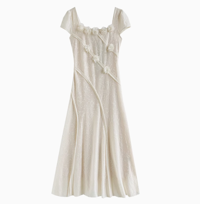 Summer new style elegant high-grade blue dress square collar waist long skirt R1898