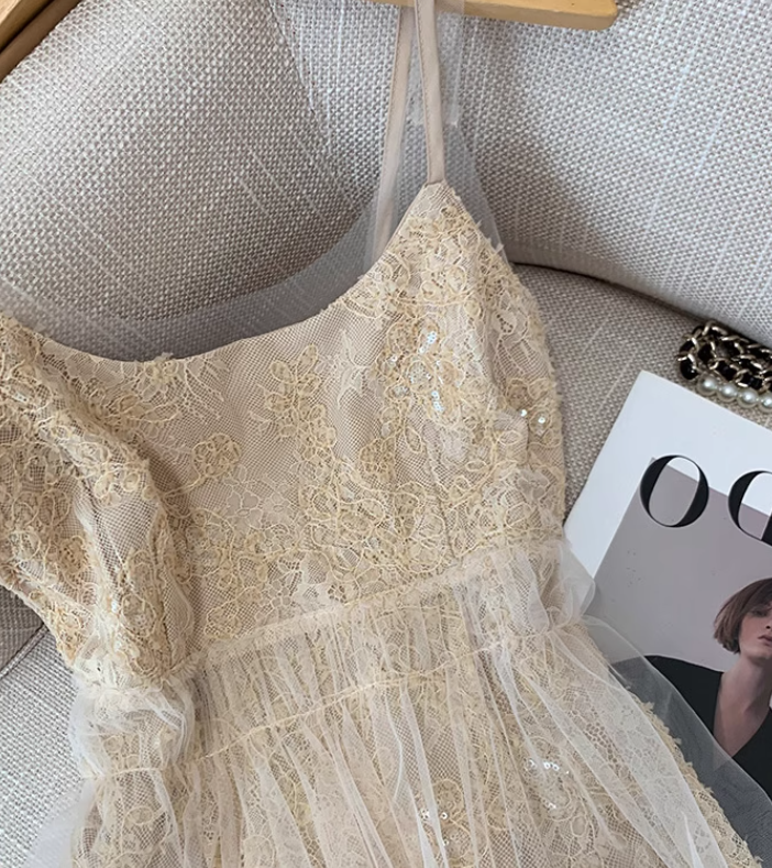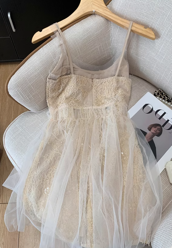 Sweet and spicy suspender dress for women new style waist slim mesh lace waist short skirt R3988