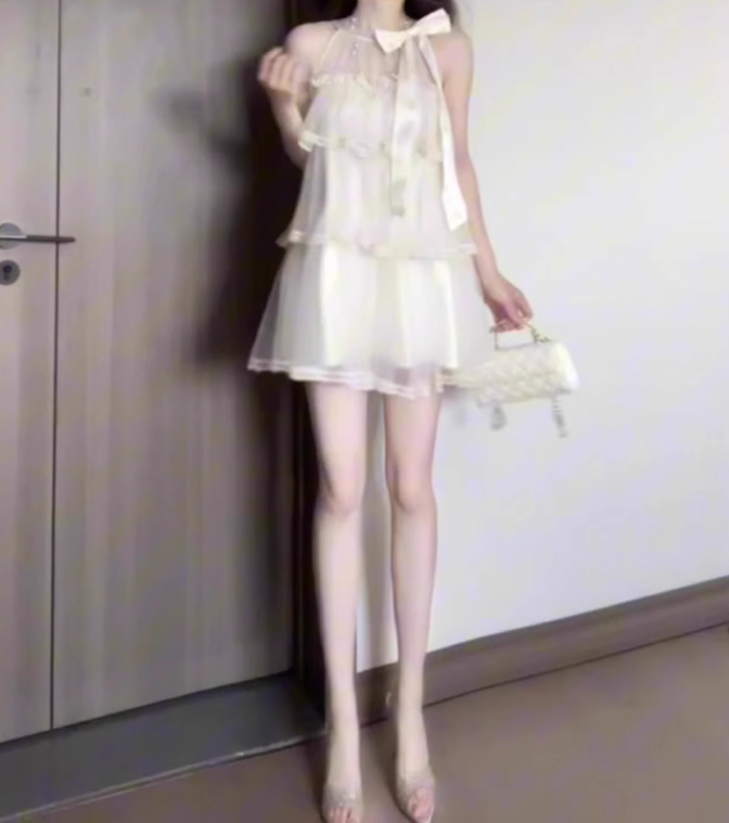Sweet style sleeveless halter neck dress beautiful temperament puffy short skirt R0760