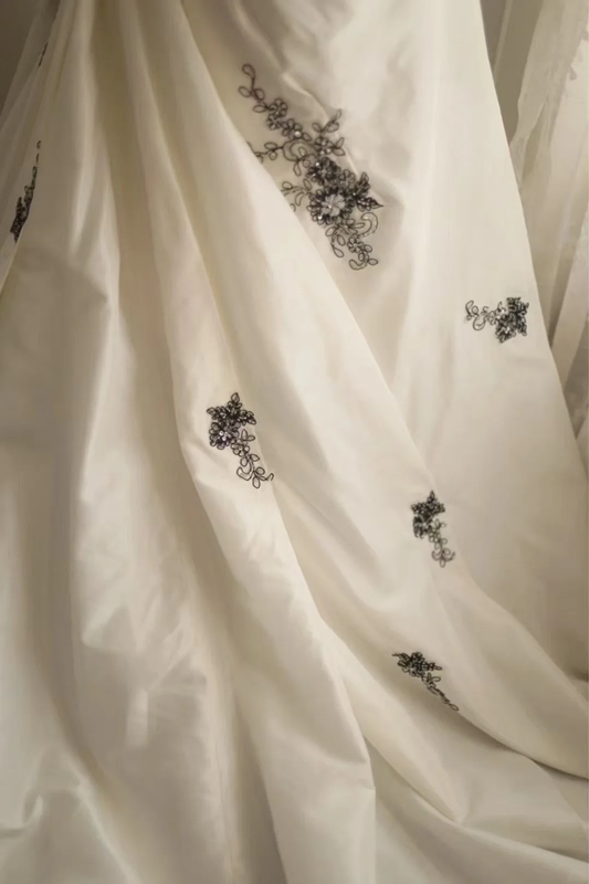 White halter-neck, black embroidered, fitted, bodycon long ball gown R6740