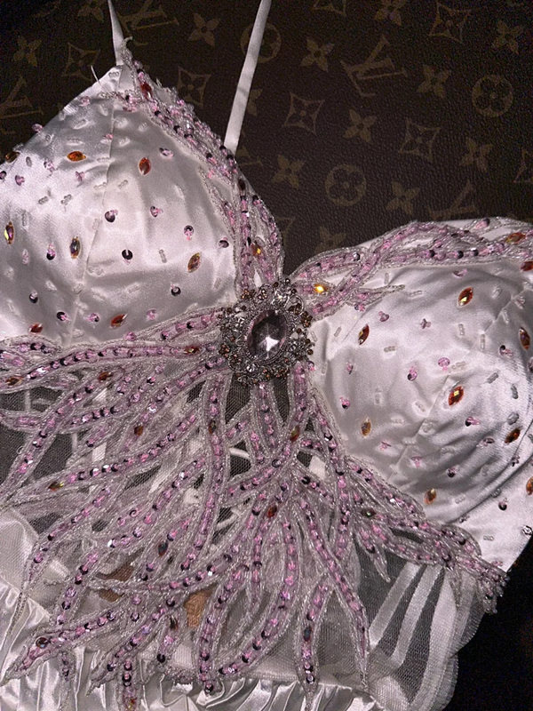 White halter-neck rhinestone-embellished fitted long ball gown R6905