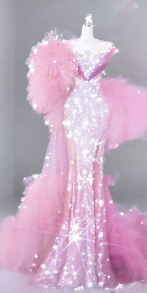 White sequined fitted bodice with a fishtail hem, long ball gown R6465