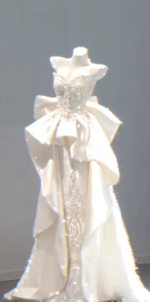 White Strapless Fitted-Waist Slim-Fit Prom Dress with a Stylish Hem R6513
