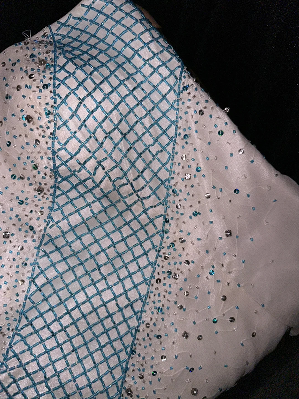 White strapless high-waisted beaded long ball gown, ethereal and charming R6942