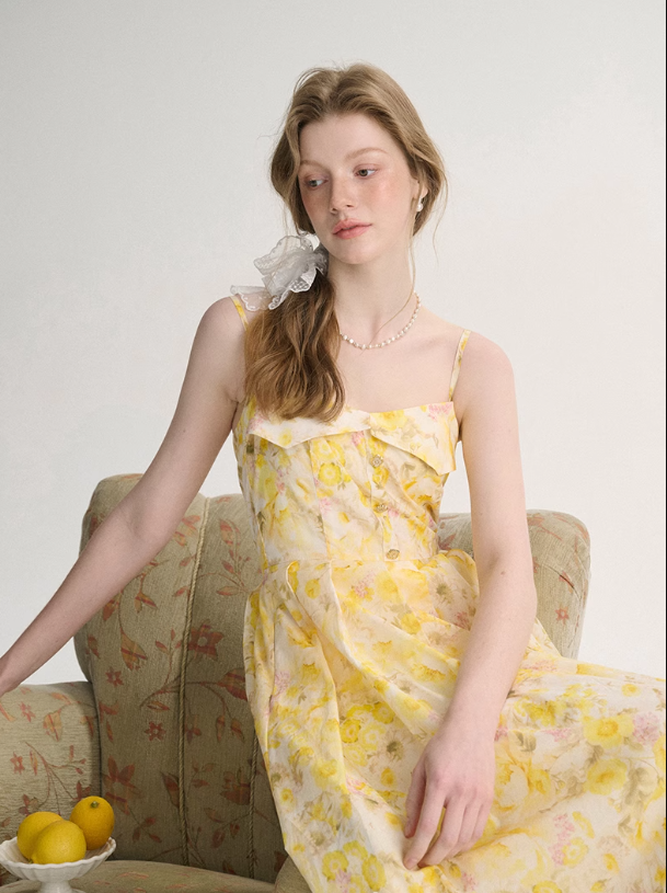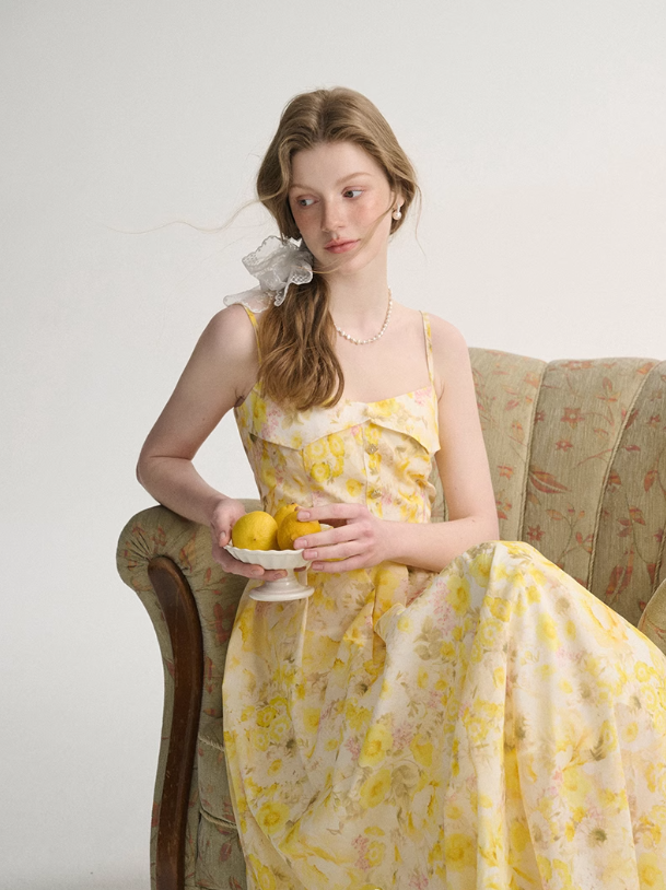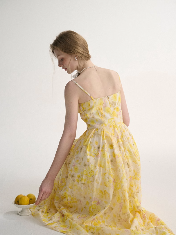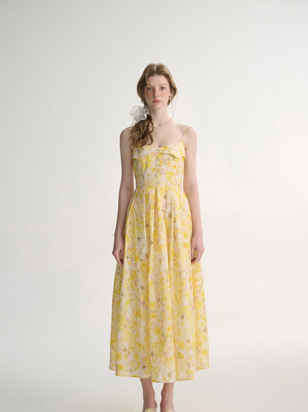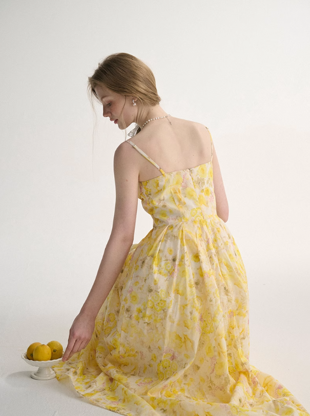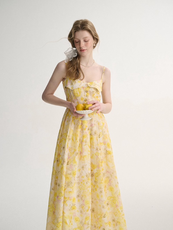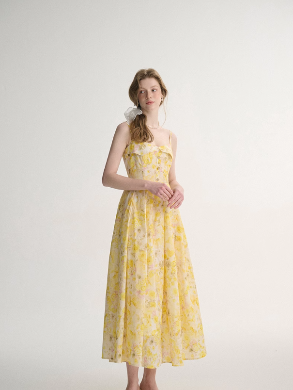 Yellow floral maxi dress suspender dress holiday outfit dress floral dress R2694