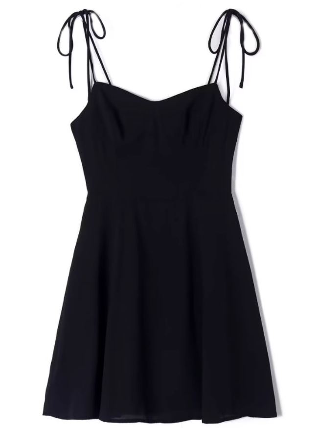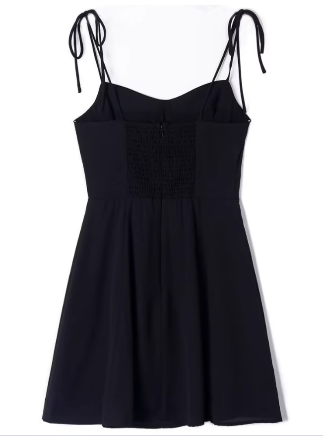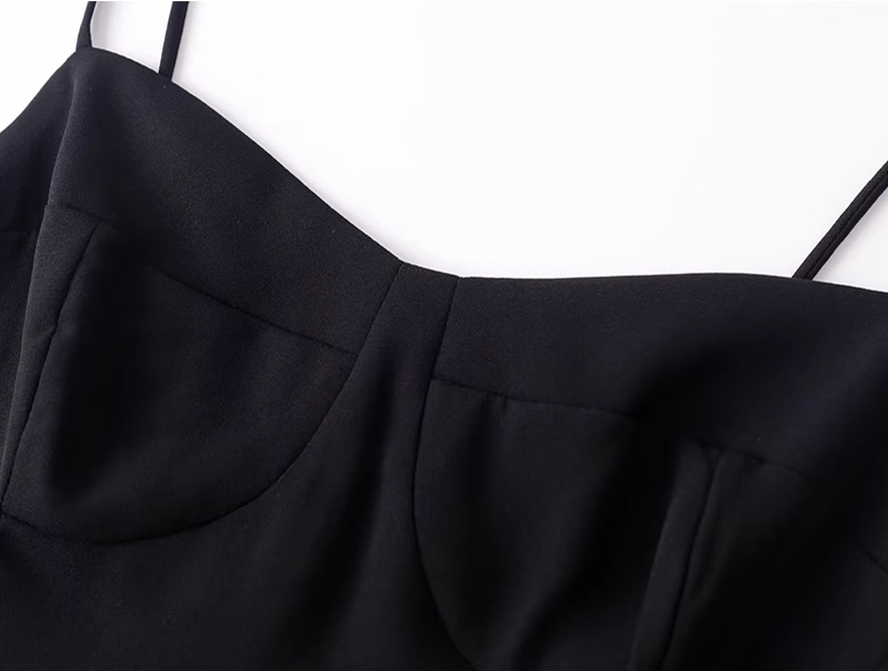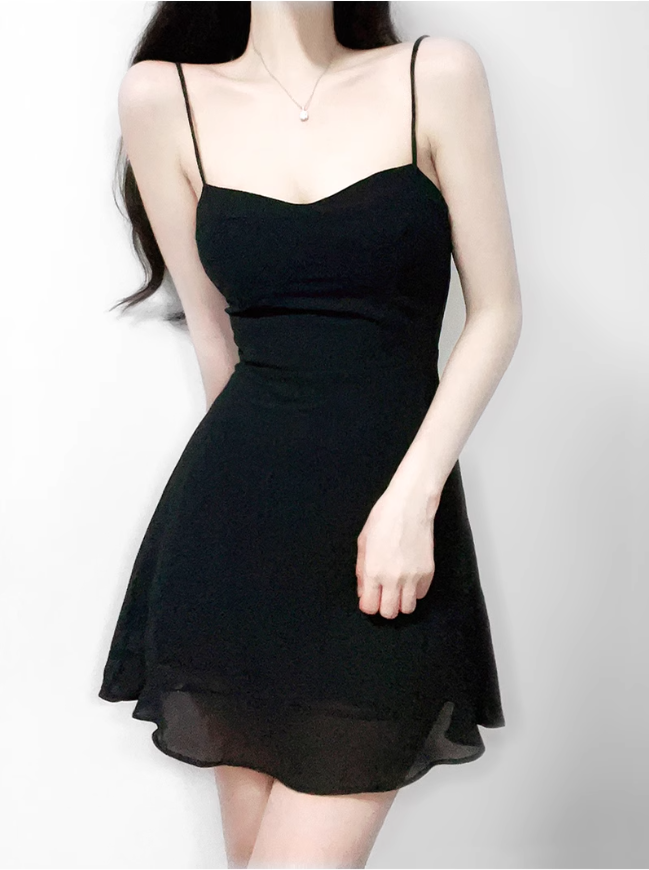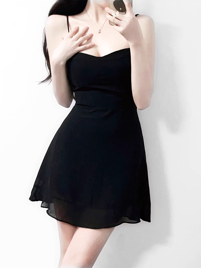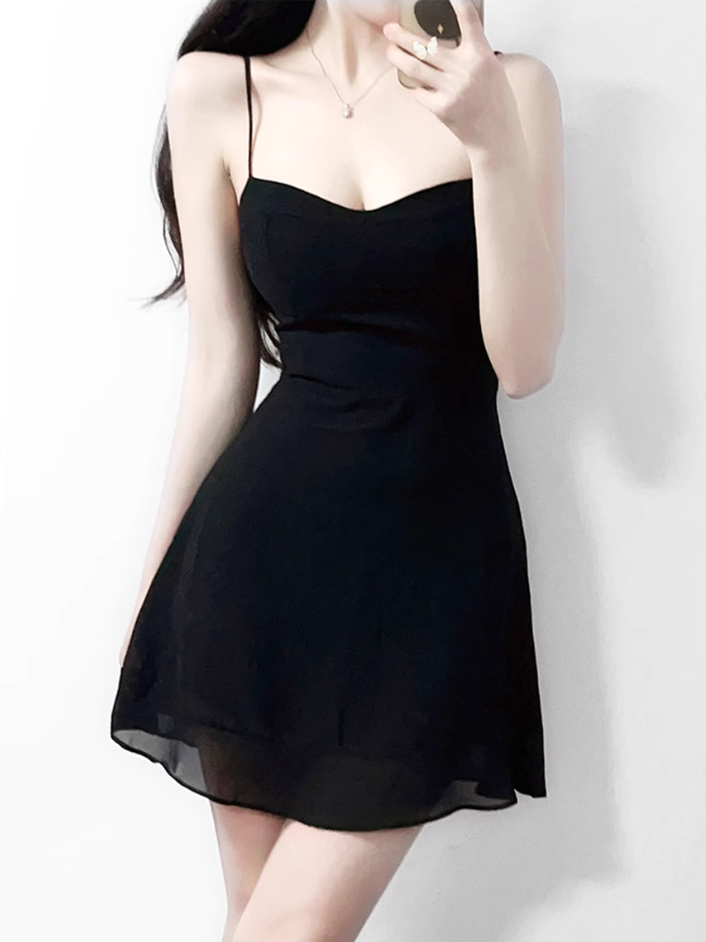 2025 summer new sexy petite pure black slim short suspender dress R0946